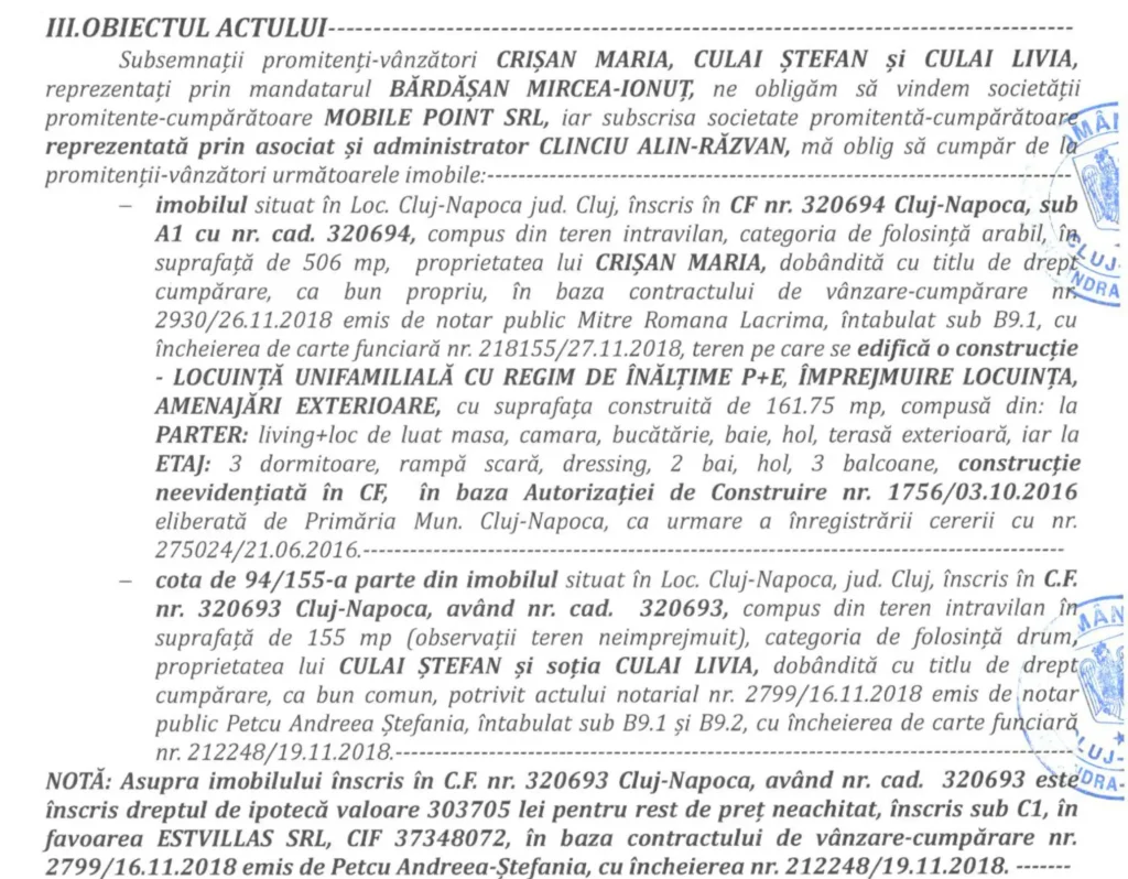Asa ca, in 3 august 2022 l-am chemat in judecata pe cale civila intr-un proces cu obiectul OBLIGATIA DE A FACE. Adica cerem instantei sa il oblige sa faca toate demersurile si sa putem transcrie casa noastra pe noi. Cand spun ca l-am chemat in judecata, de fapt i-am chemat in judecata pe Crisan Maria, Culai Stefan si Culai Livia. Persoanele de pe promisiune, chiar daca mereu e Bardasan cel care semneaza. Parte din intampinare a fost si atasarea de probe (inscrisuri) care sa ateste starea de fapt. Concret, am scos extrase CF pe ambele parcele 320693 si 320694, pentru a le depune la dosar.